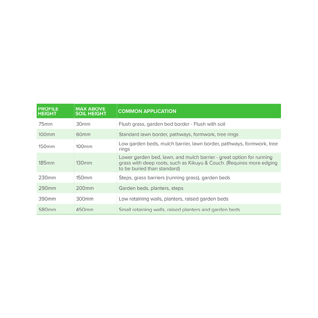 Available Heights: 75mm, 100mm, 150mm, 185mm